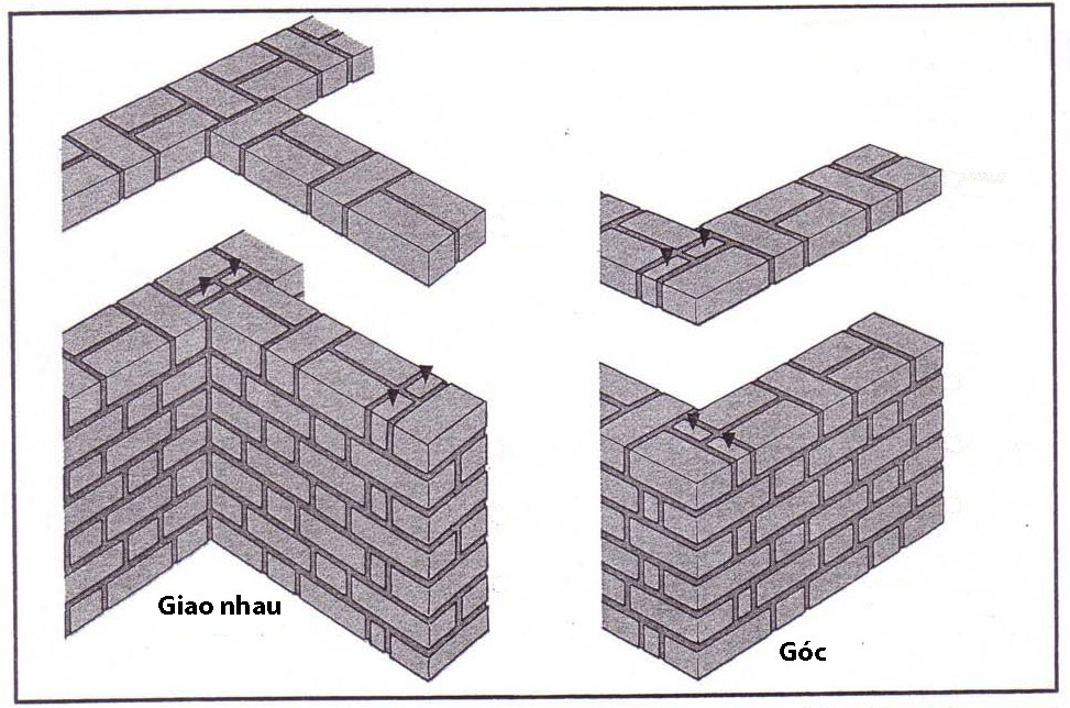 2/Cách đặt gạch trong khối xây: