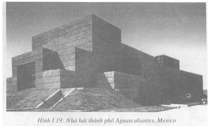Khối xây được thực hiện bằng cách xếp gạch hay đá với mục đích tạo hoa văn hay tạo hình khối kiến trúc. Việc xếp đá nhỏ chèn chặt giữa các viên đá to vừa có tác dụng tạo ra các họa tiết trang trí vừa làm tăng độ đặc chắc của khối xếp (Hình I.18). Những khối đá to được đẽo gọt kĩ và xếp chồng lên nhau đã tạo ra được những hiệu quả đặc biệt như nhà hát thành phố Aguascaliantes, Mexico (Hình I.19).